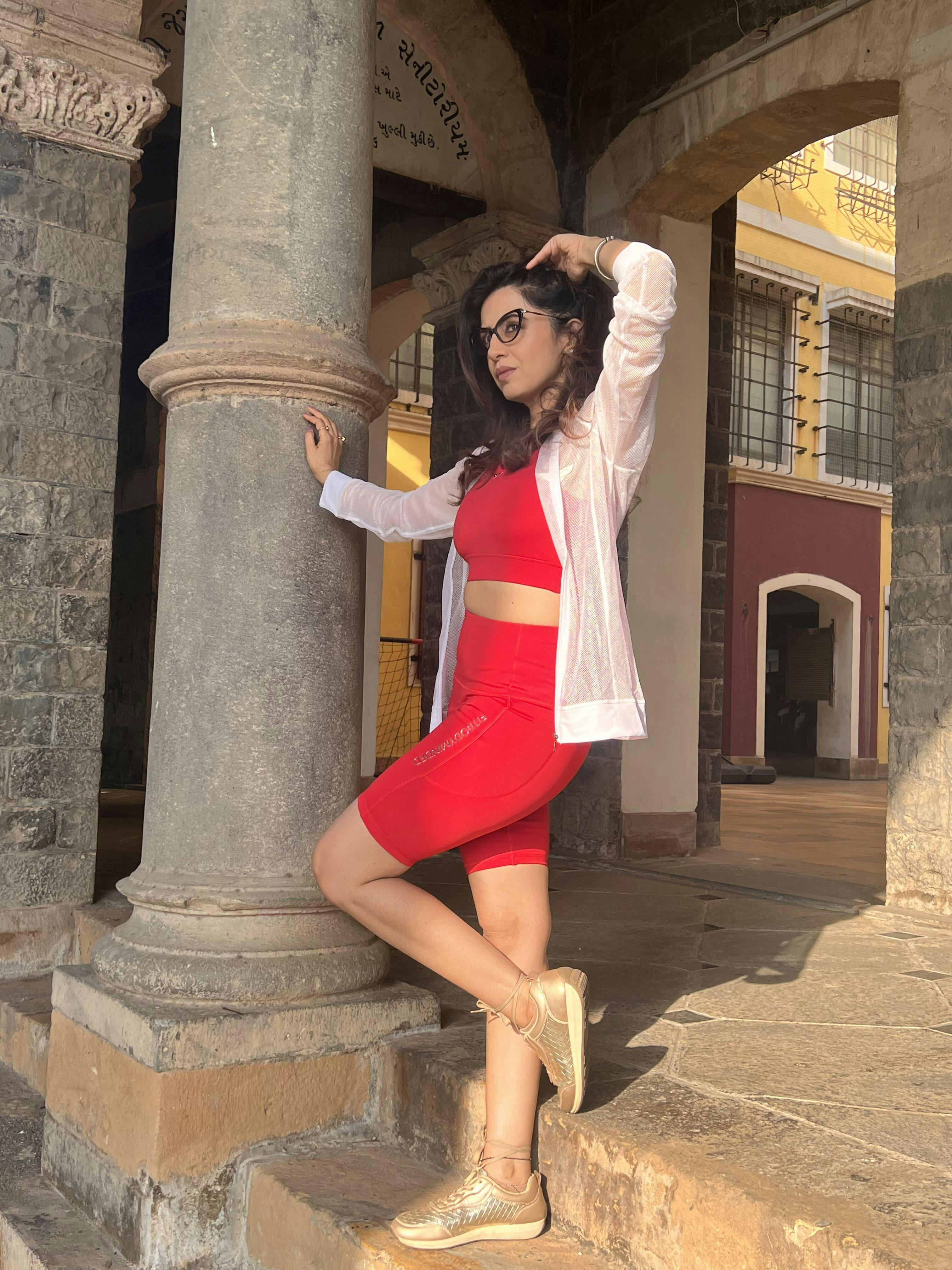 Premium High Waisted Cycling Shorts - Fire Red
